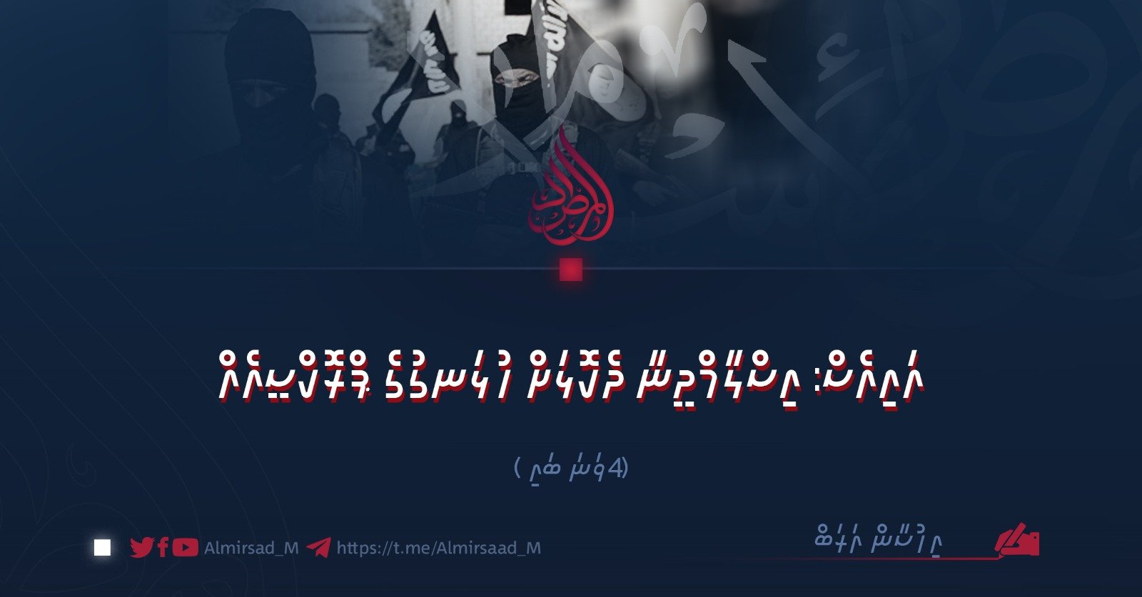 ހަމައެކަނި ލަޖިކަލް ޖަވާބަކީ ހުޅަނގުގެ ބޮޑު ތާއީދެއް އެމީހުންނަށް ލިބޭ ކަމެވެ. އިސްލާމްދީނަކީ ޓެރަރިޒަމްގެ މާނައެއް ކަމަށް ގަސްތުގައި ސިފަކޮށް، އައިއެސްގެ ބިރުވެރިކަން ފެތުރުމުގެ ޒިންމާ އުފުލަނީ ކާފަރު ދުނިޔޭގެ މީޑިއާ އެވެ. ނަމަވެސް ހަގީގަތަކީ އިސްލާމްދީނަކީ އައިއެސް އާއި އައިއެސްގެ ނަފްރަތު ބޮޑު އަމަލުތަކާ ވަރަށް ތަފާތު ގޮތެކެވެ.