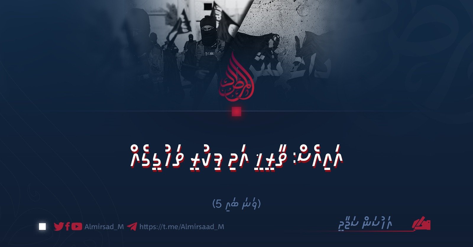 ނިންމާލަމުން ބުނަން ޖެހެނީ އައިއެސް އަކީ އިސްލާމްދީނުގެ މަންދޫބެއް ނޫން ކަމެވެ. ހަގީގަތުގައި އެއީ އީމާންތެރިކަމުގެ ދުޝްމަނެކެވެ. އޭގެ އަމަލުތައް ހުރީ އިސްލާމީ އުސޫލުތަކާ ފުށުއަރާ ވަރަށް ބޮޑަށް ކަމުން އިސްލާމީ ފިކުރުގެ އެންމެ ހަރުކަށި އަޑުތަކުން ވެސް އެކަންކަން ތަސްދީގު ކުރަން ދެކޮޅު ހެދި އެވެ.