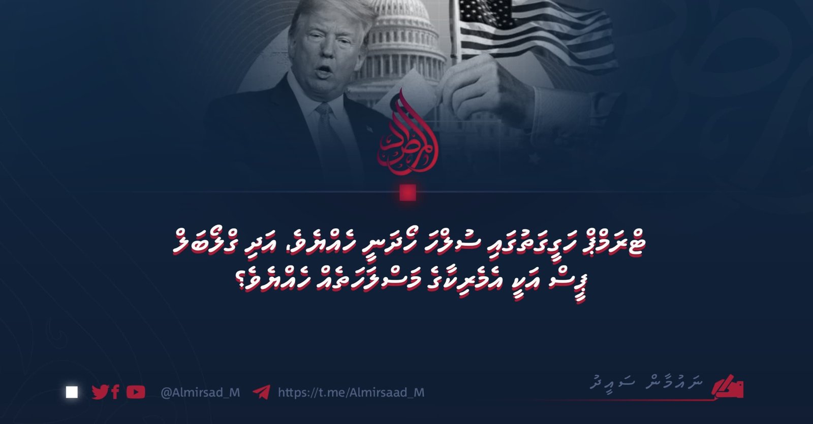 ޑޮނަލްޑް ޓްރަމްޕް ހަގީގަތުގައި ސުލްހަ ހޯއްދަވަނީތޯއާއި، ދެމިއޮންނަ ދުނިޔޭގެ ސުލްހައަކީ އެމެރިކާގެ މަސްލަހަތުގައި ވެސް އޮތް ކަމެއްތޯ ކުރެވޭ ސުވާލަކީ ދުނިޔޭގައި އެމެރިކާގެ ދައުރު ބައްޓަންކުރާ ސިޔާސީ، އިގްތިސާދީ އަދި ތާރީޚީ ހަގީގަތްތަކަށް ވަރަށް ފަރުވާތެރިކަމާއެކު ވިސްނަން ޖެހޭ ސުވާލެކެވެ.